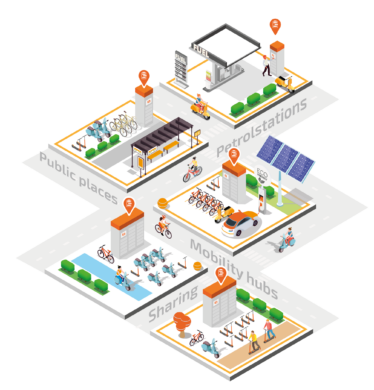 Eine dezentrale Lade- und Wechselinfrastruktur für Sharing, Transport und Logistik spart CO2, Lärm und Verkehr. Unternehmen müssen die Akkus nicht mehr mit Transportern einsammeln und zu Lagerhäusern zum Aufladen bringen. Die Batterien werden einfach dort geladen, wo sie benötigt werden, während die E-Fahrzeuge dank schnellem Akkuwechsel keine Ausfallzeiten haben.